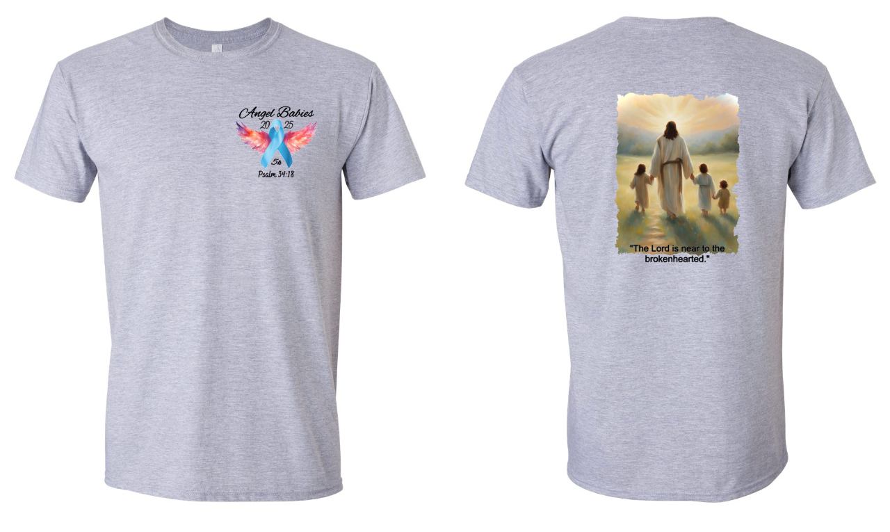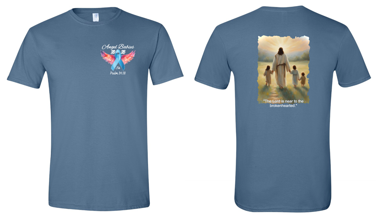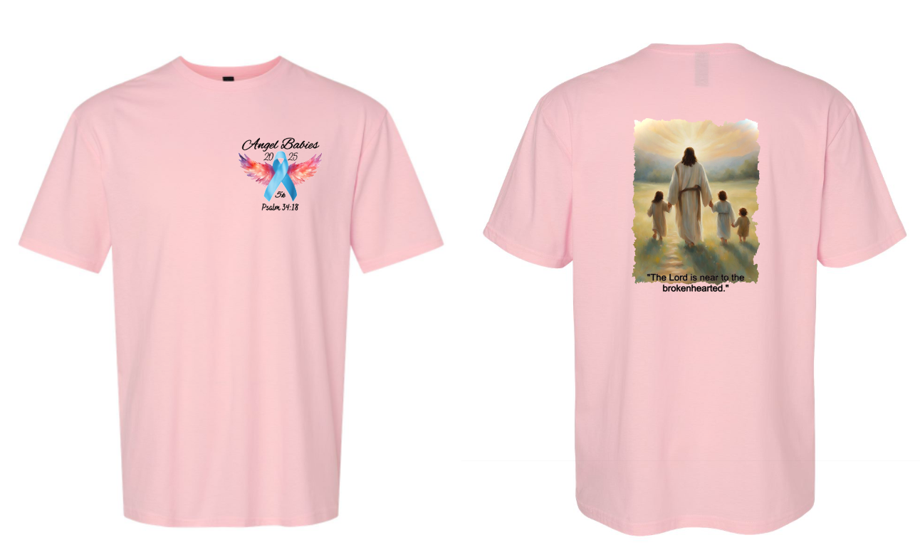 - Introducing the Angel Babies 2025 5K made with 100% US cotton! Every thread of this shirt is crafted with the newest soft cotton technology, ensuring a truly comfortable and durable experience. With a classic fit, rib collar, and taped neck and shoulders, this shirt is designed to provide ultimate comfort and convenience. Plus, its tear away label adds the perfect finishing touch.