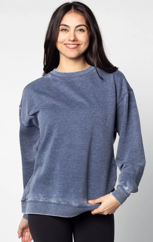 The Burnout Crew is your next favorite sweatshirt! Unisex oversized fleece sweatshirt with ribbed neckline, cuffs, hem. Dropped shoulders and relaxed bottom hemline. Burnout wash process provides a unique, washed and worn look and a comfortable feel.