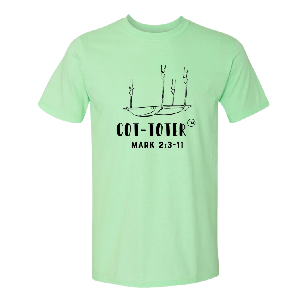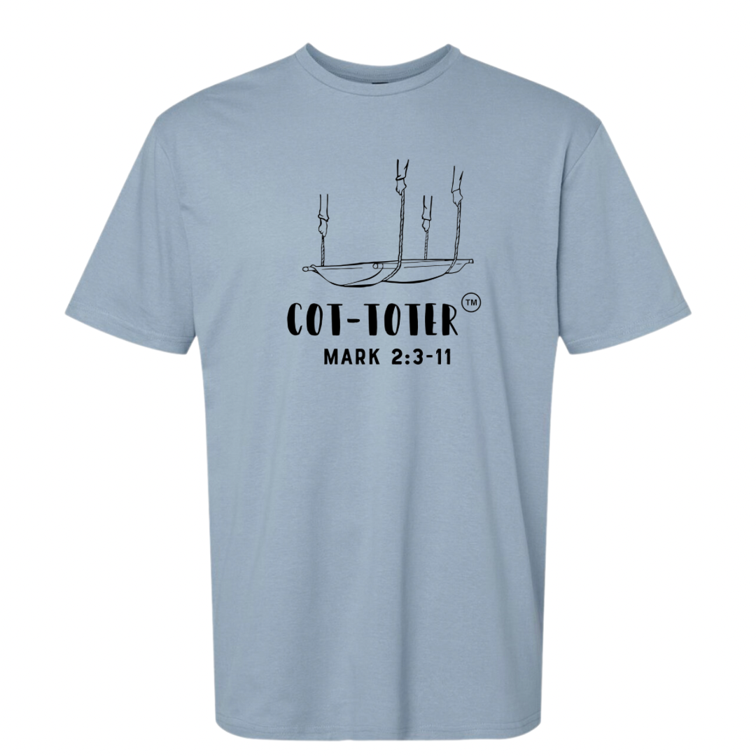Cot-toter, trade marked by Marion Norrell, is based off the scripture Mark 2:3-11. We all need someone to “tote” our cot and bring us to Jesus when we feel paralyzed.