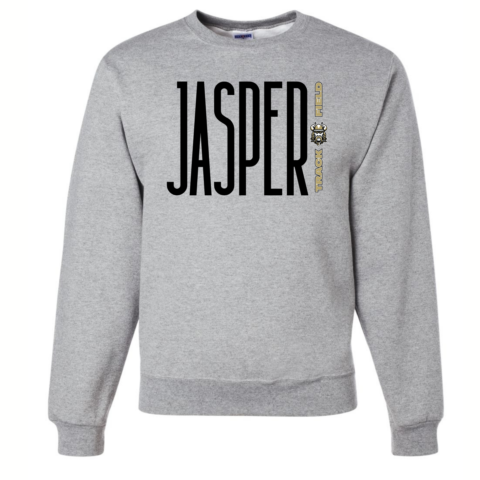 - Jasper Track and Field Crew is made with 8 oz./yd² of (US) 50/50 cotton/polyester. It has been pre-shrunk and features NuBlend® pill-resistant fleece for maximum durability. With a high-stitch density, this crew provides a smooth printing canvas. The seamless body with set-in sleeves and 1x1 ribbed collar, cuffs and waistband with spandex ensure a comfortable fit. Double-needle stitching on the collar, armholes, and waistband adds extra strength. The cuffs have been quarter-turned for a unique twist (literally). The tear away label is an added bonus.