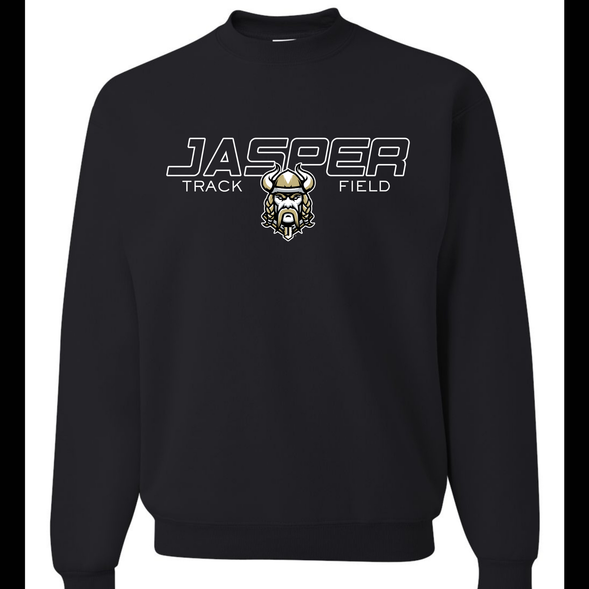 Jasper Track and Field with Head Logo Crew 8 oz./yd² (US), 50/50 cotton/polyester Pre-shrunk NuBlend® pill-resistant fleece Smooth printing canvas with a high-stitch density Bodacious body with set-in sleeves 1x1 ribbed collar, cuffs, and waistband with somethin' called spandex Double-needle stitching on collar, armholes, and waistband Concealed seams on cuffs for maximum sleekness Quarter-turned for optimal style Tear away label included for effortless removal