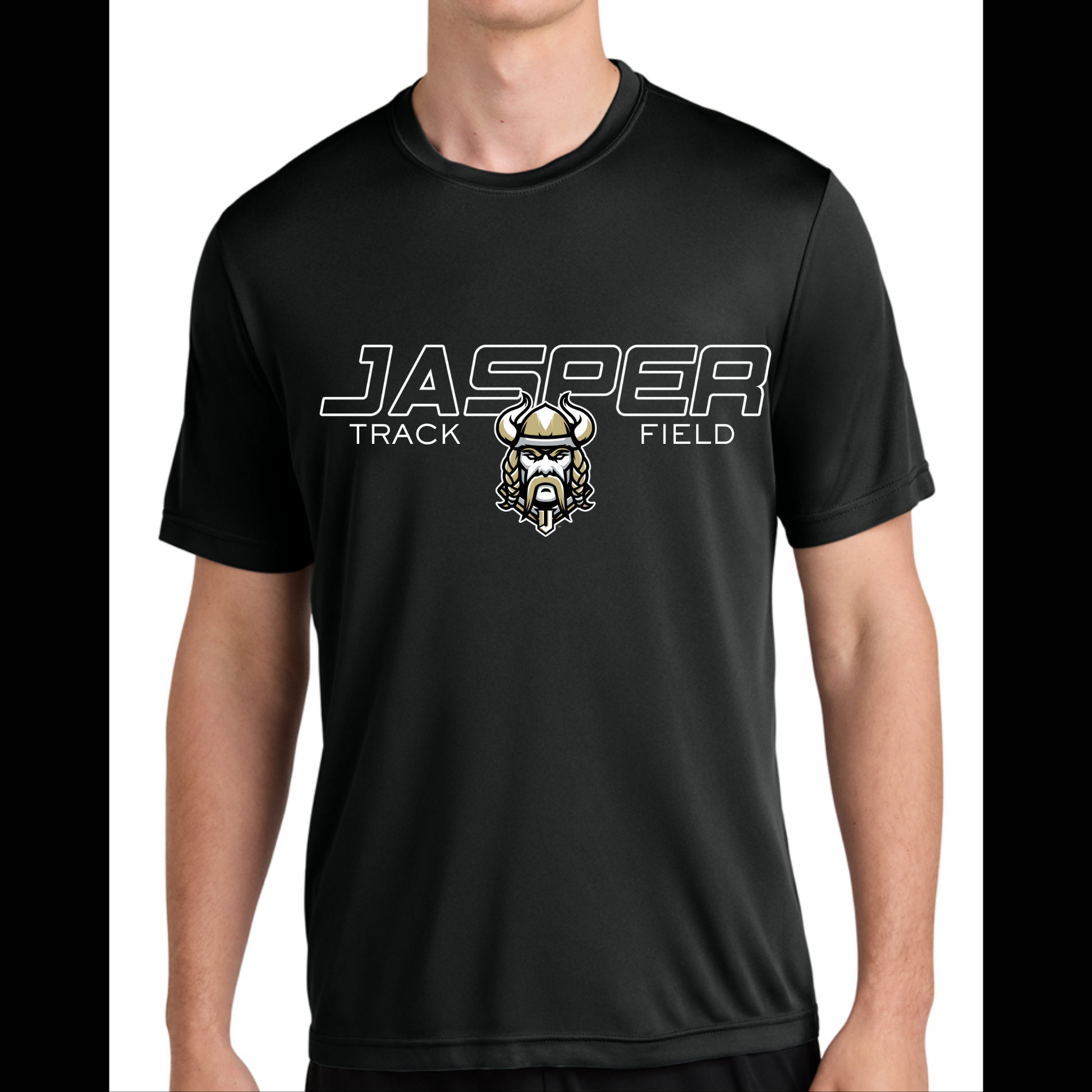 Introducing the Jasper Track and Field Head Logo tee - perfect for all your athletic adventures! With its lightweight, roomy design and highly breathable fabric, you'll stay cool and dry all day long. Plus, our PosiCharge technology ensures the color and logos won't fade, so you can wear it for countless workouts. Made with 100% polyester interlock and featuring removable tags for added comfort and easy relabeling, these tees are a steal. Order now!